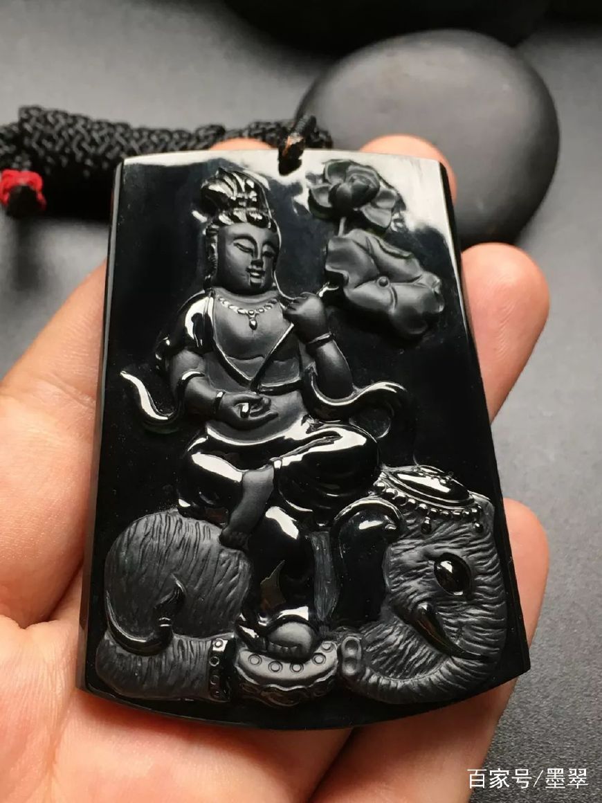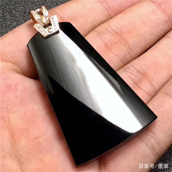 前面说过墨翠硬度比较高,所以翡翠经过打磨雕琢,抛光后表面呈玻璃光泽;不瞒大家,我刚入行那会,看到墨翠一直以为是黑曜石。